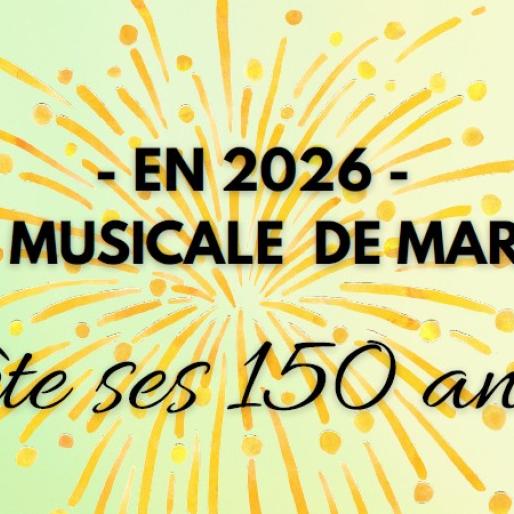 L'Union Musicale de Mardié Bou fête ses 150 ans ! Contenu A savoir Dates 11 avril 2026 Lieu Salle France Routy, Mardié Thématique(s) Associations Gratuit Non D'autres évènements SUR LE MEME THEME 26 avr Thématique(s) Associations Repas des anciens de la Saint Vincent Rendez-vous à 12h30 le dimanche 26 avril 2026 Attention : Évènement réservé uniquement aux membres honoraires ! 28 fév 01 Mar Thématique(s) Associations Spectacle Coup de Coeur Coup de Cœur vous propose d'assister au cabaret (en version allégée) de la compagnie Youp La Boum. Rendez-vous samedi 28 février 2026 à 20h30 et/ou dimanche 01 mars 2026 à 15h00, à la salle des fêtes de Chécy. 12 déc Thématique(s) Associations Concert et Randonnées par Coup de Coeur 20 déc Thématique(s) Associations Marché de Noël 2025 Tous les événements